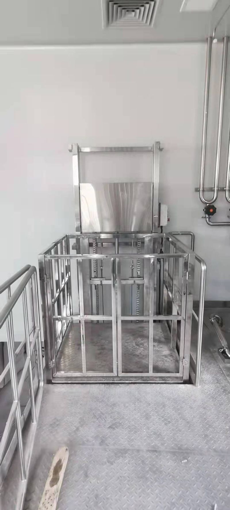 不銹鋼導軌貨梯安裝完成!適用于潔凈車(chē)間貨物運輸!