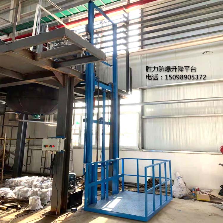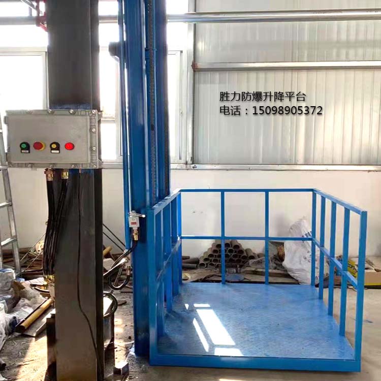 防爆升降平臺是一種快速實(shí)現樓層間貨物運輸的簡(jiǎn)易電梯,主要結構為液壓式,因此也被稱(chēng)為防爆液壓式升降貨梯,一般防爆等級為ExdIIBT4,適用于化工車(chē)間、食品廠(chǎng)、藥廠(chǎng)等需要使用防爆環(huán)境的場(chǎng)所。勝力機械生產(chǎn)的防爆升降平臺載重從500公斤到100噸不等,提升高度根據客戶(hù)現場(chǎng)的實(shí)際高度進(jìn)行定制。平臺的大小,是否需要轎廂,轎廂材質(zhì)等都可以根據客戶(hù)的需求定制,滿(mǎn)足不同客戶(hù)的使用要求。