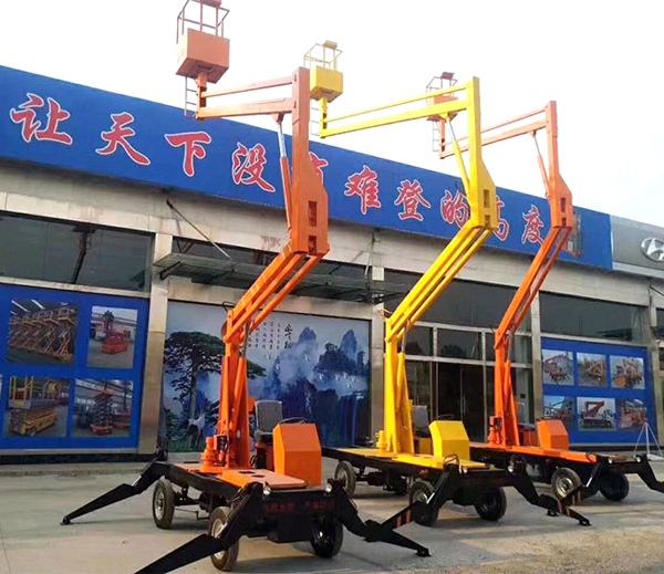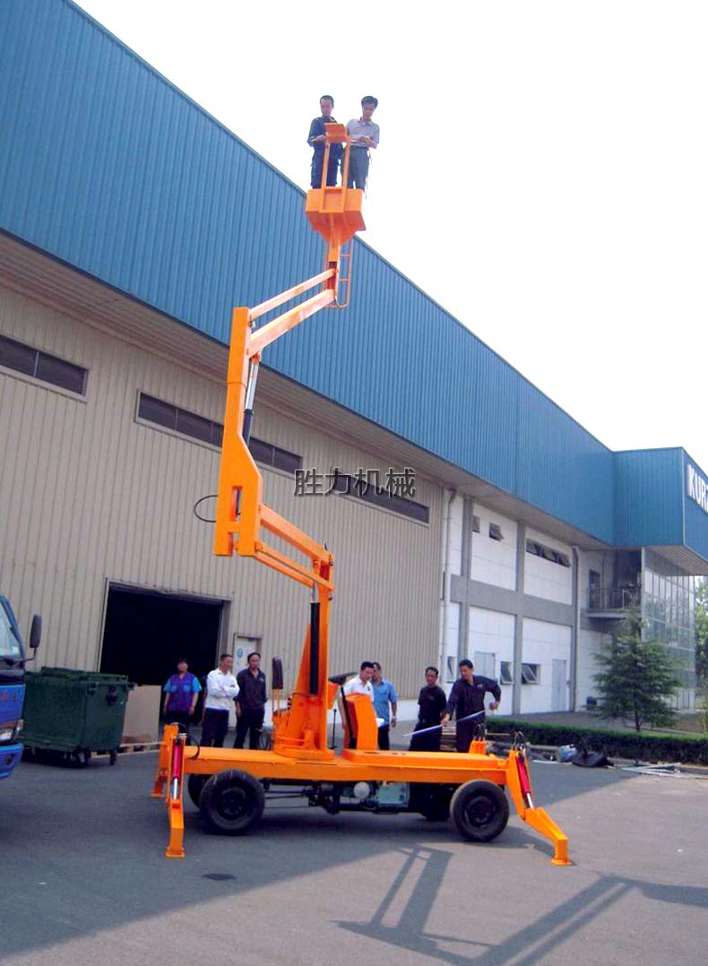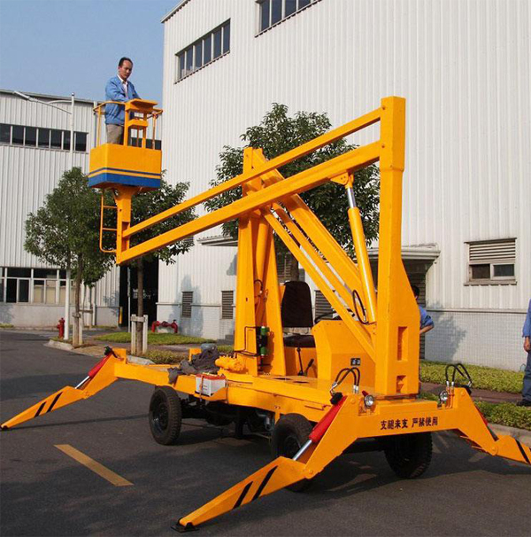 移動(dòng)曲臂式升降平臺是由二、三節升降臂組成的高空作業(yè)平臺,可懸伸作業(yè)、也可跨越障礙物在一處地點(diǎn)進(jìn)行多點(diǎn)作業(yè),它采用液壓撐腿,360度旋轉作業(yè),工作高度可達15米左右,特別適用于室外高空作業(yè)。移動(dòng)曲臂式升降平中的運輸方式非常簡(jiǎn)單,工作人員可在平臺上通過(guò)方向盤(pán)直接把平臺駕駛到工作地點(diǎn)。它的行走與升降動(dòng)力一般為電瓶驅動(dòng)或柴油發(fā)動(dòng)機兩種,為了便于操作,柴油發(fā)動(dòng)機采用電啟動(dòng)方式。該產(chǎn)品被廣泛應用于園林、電力、市政、攝影、路燈、廣告、交通、大型工礦企業(yè)、車(chē)站、機場(chǎng)、碼頭等行業(yè)的安裝維修及登高作業(yè)。