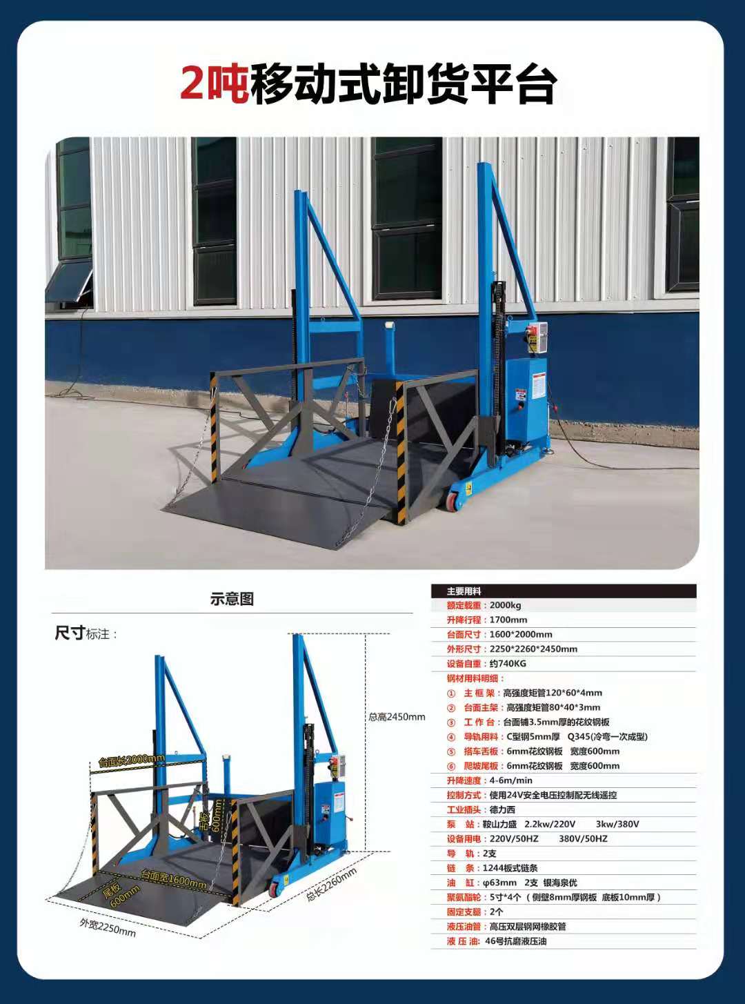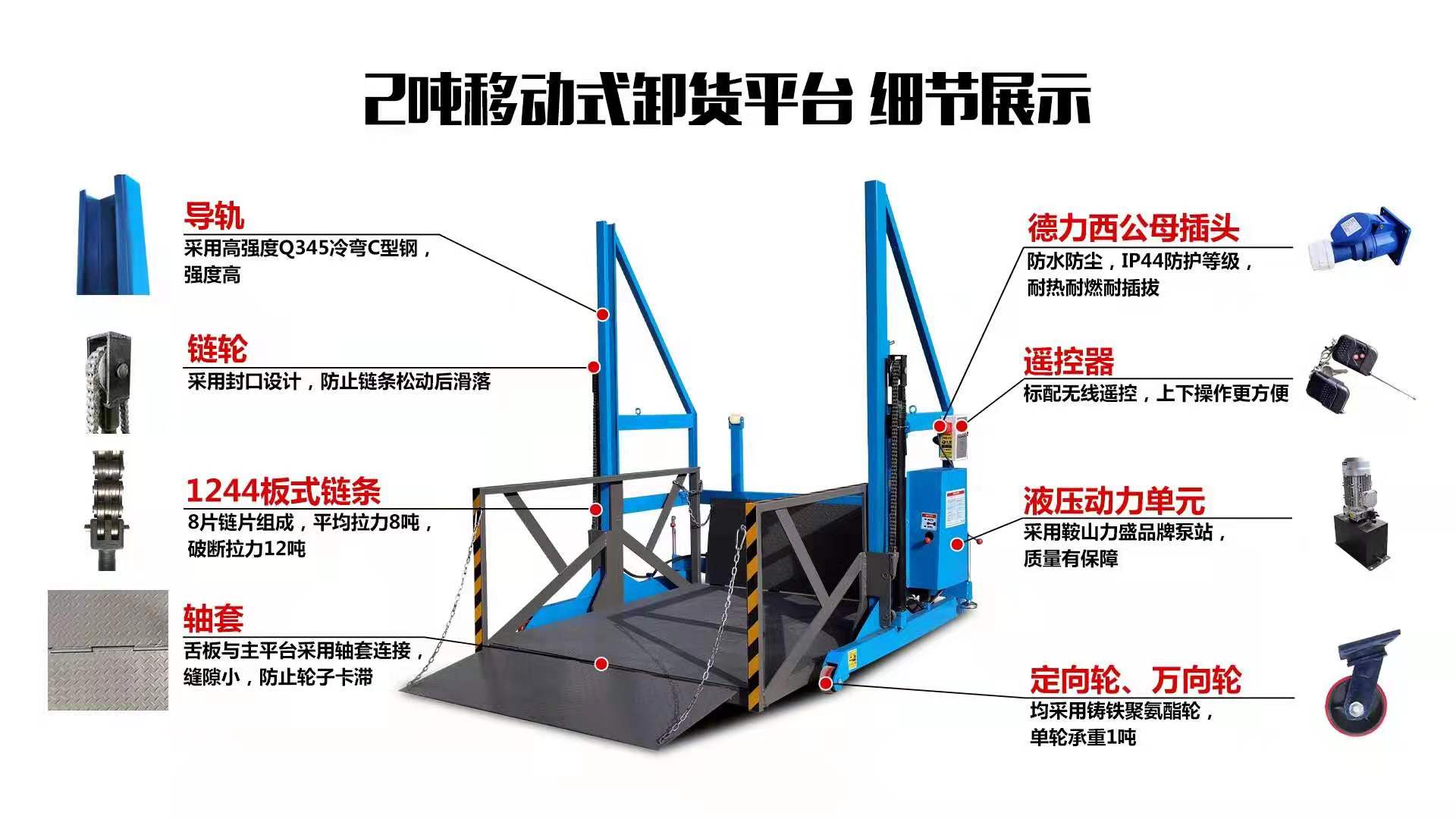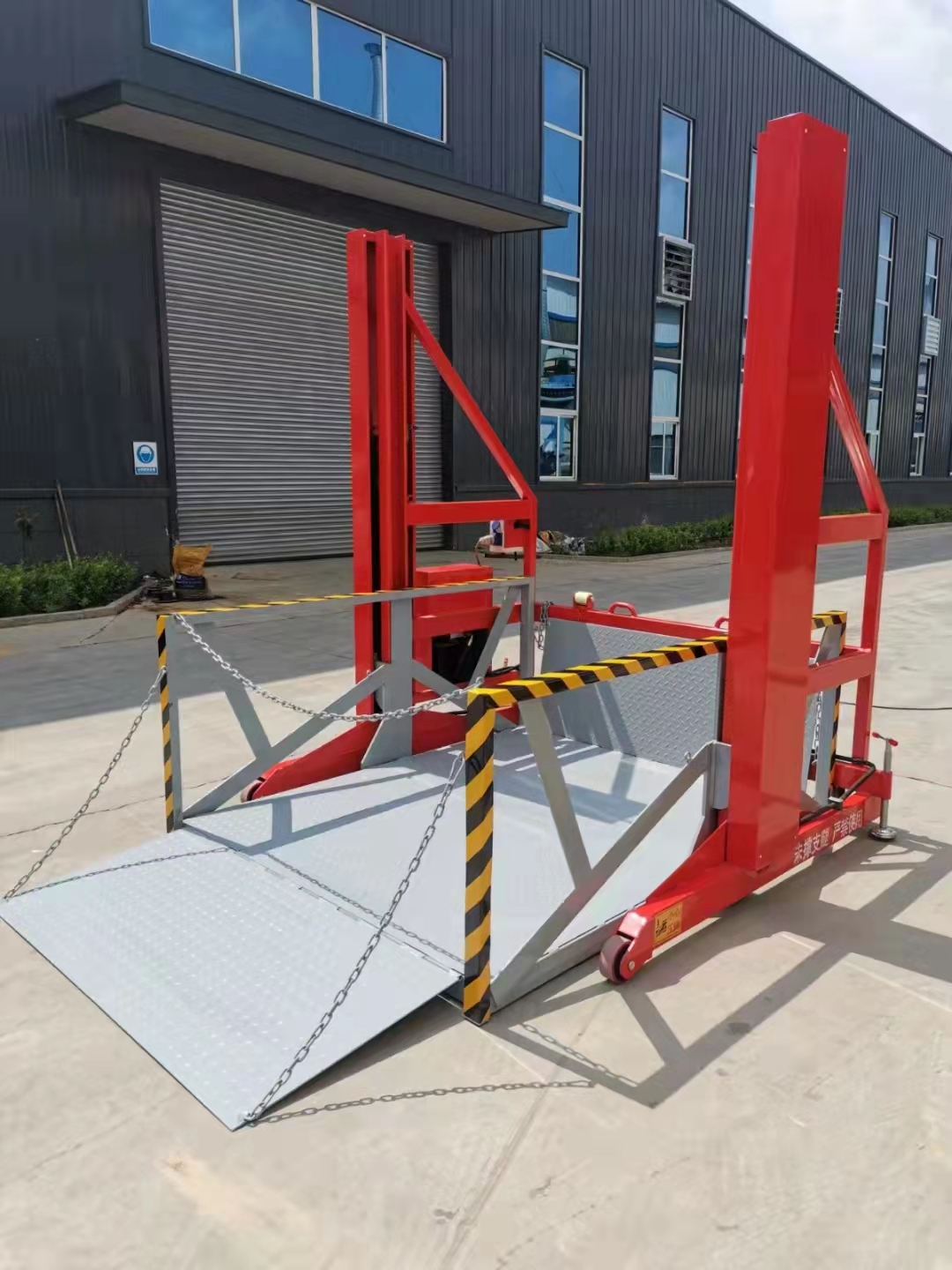 卸貨柜設備也可以叫做升降式卸貨平臺,屬于可移動(dòng)升降平臺。卸貨柜設備擁有移動(dòng)靈活,升降平穩的特點(diǎn)。被廣泛應用于集裝箱與叉車(chē)等搬運車(chē)輛配套進(jìn)行貨物的快速裝卸等。卸貨柜平臺的操作簡(jiǎn)單,把平臺移動(dòng)至需要裝卸貨物的車(chē)輛尾部,把叉車(chē)等貨物放入工作臺面上,一人通過(guò)無(wú)線(xiàn)遙控或工作臺面上的按鈕即可輕松把叉車(chē)等貨物升高至與車(chē)尾同等高度,使叉車(chē)與貨物輕松快速的駛入車(chē)廂內部。