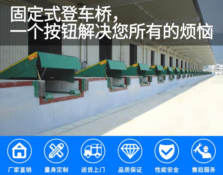 固定式登車(chē)橋是與倉儲月臺一起的裝卸輔助設備,本設備與月臺一體,可根據貨車(chē)車(chē)廂不同高度調節即可調高也可調低,它的高度調節功能使貨車(chē)與庫房的貨臺之間架起一座橋梁,方便叉車(chē)駛入車(chē)廂內部進(jìn)行貨物的批量裝卸。設備采用進(jìn)口液壓泵站,兩側設有防軋裙板,工作更加安全,僅需單人作業(yè),即可實(shí)現貨物的快速裝卸。固定登車(chē)橋可使企業(yè)減少大量勞力,提高工作效率,獲取更大經(jīng)濟效益。固定登車(chē)橋被廣泛應用在裝卸車(chē)頻繁、車(chē)型不一的大型企業(yè)、倉庫、車(chē)站、碼頭、倉儲物流基地、郵政運輸、物流配送等。